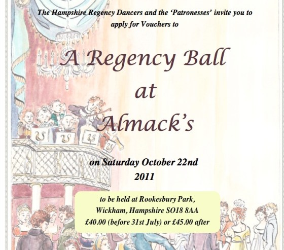 Hoy, 22 de Octubre de 2011, tendrá lugar el Baile Anual de Regencia que organizan los Hampshire Regency Dancers, de los que ya os hemos hablado en otras entradas: