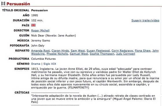 Hoy os traigo una película que no me canso de ver. La versión de Persuasión de 1995 con Ciaran Hinds y Amanda Root. Cuando se