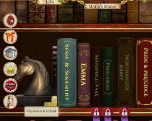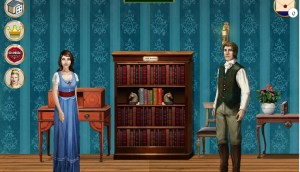 Ayer dediqué un poco de tiempo a jugar, y la verdad es que está entretenido. La trama consiste en que Elizabeth y Mr. Darcy se han escapado de la novela Orgullo y Prejuicio, y la Srta. Austen los está buscando para poder terminarla. La pareja se esconde por los paisajes y entornos de todas las novelas Austen: Emma, Sentido y Sensibilidad, Persuasión, La Abadía de Northanger y Mansfield Park.