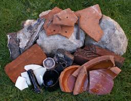 porcelana rota con el típico dibujo azulado, utensilios de cocina, tuberías de barro, vidrios y más de mil clavos, que proporcionan detalles sobre el tipo de construcción).