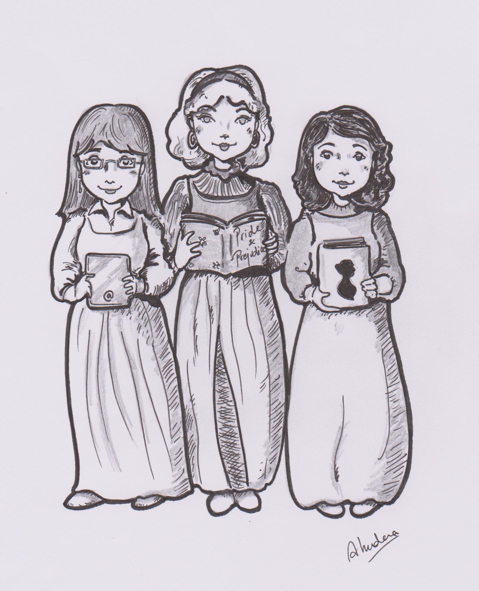 han llovido las secuelas, precuelas y loquecuelas de Orgullo y Prejuicio: la infancia de Lizzy y Darcy, Los Darcy se jubilan, los nietos de los Darcy, Cotilleos de Pemberley, La vuelta al mundo de los Darcy… en fin, estos me los he inventado yo, por si acaso algún rezagado todavía quiere escribir algo… Mención aparte merecen los zombis, los eróticos, los videojuegos (la verdad es que con estos me lo he pasado muy bien y he conocido mogollón de austenitas de todo el mundo)… Y mención muy especial que por fin Almudena Romero, ilustradora, se “lanzó” a diseñar los dibujos en español de nuestras camisetas de austenitas reivindicadoras. Nos ha enseñado su arte todo lo que ha podido, proporcionándonos ilustraciones y carteles maravillosos. Y su apoyo ha sido constante como su generosidad y cariño.