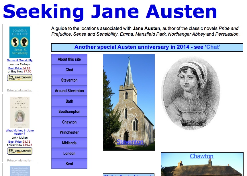 Hoy me complace muchísimo traeros una web en la que estén todos los lugares que podéis visitar relacionados con la vida de Jane Austen, y que se llama Seeking Jane Austen. Hoy por hoy, a mí me parece la mejor referencia por si estáis planeando hacer un viaje a Inglaterra e incluir todo lo relacionado con Austen, ¡Ya lo tenéis bastante completito! Haced click en la imagen para ir a la web