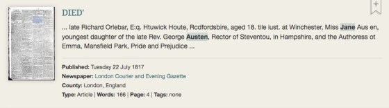 El martes 22 de Julio de 1817 apareció un tercer obituario, ésta vez haciéndose mención a la faceta de Jane Austen como escritora. Fue en el Courier (n0.7744, página 4)