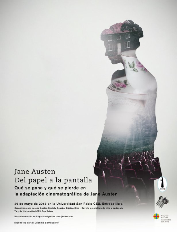 El próximo 26 de Mayo de 2018, sábado, tendremos la oportunidad de reunirnos de nuevo en la sede del CEU en Madrid, para hablar de Jane Austen «Del Papel a la Pantalla». Organizado por la Jane Austen Society España, hablaremos de las versiones cinematográficas, y de la relevancia que han tenido tanto dentro del ámbito de la filmografía como de la literatura, o incluso más allá. En mi caso, os hablaré del por qué del éxito de cualquiera de las versiones, buenas o malas, que parecen tener las adaptaciones de sus obras.