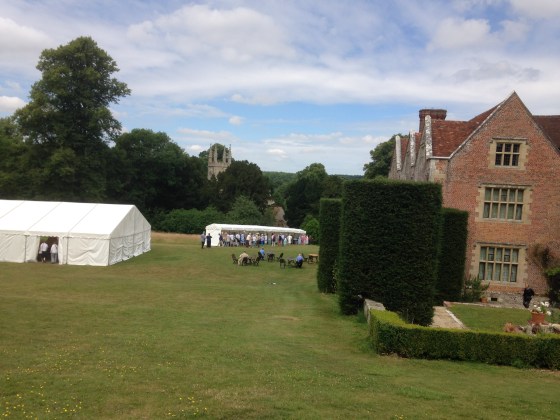 En ese momento, me di cuenta de que ya os había hablado en otra entrada de este blog sobre esta carpa y estas sillas, pues es aquí y así donde y como se celebran las bodas para quienes deciden casarse «à la Jane Austen».