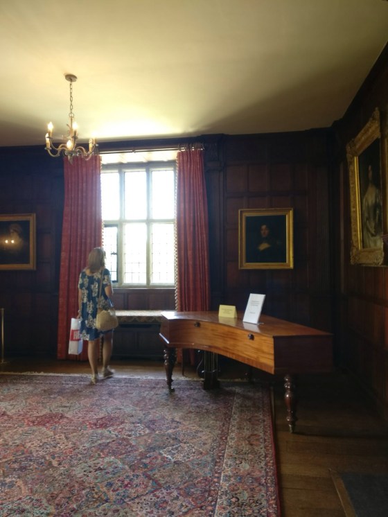 Después, pasamos al inmenso salón, con sus cortinajes, imponente… No resultaba nada difícil imaginarse a Mr. Darcy acercándose a escuchar tocar a Lizzy y, recibir de paso un rapapolvo por no practicar más el arte de relacionarse mejor con la gente…
