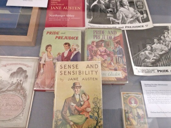 Entre los libros expuestos, se encontraban ediciones antiguar de losl ibros de Jan eausten. Probablemente, aquellos con los que empezó a tener renombre mundial, con la aparición del ferrocarril, que fue donde sus libros empezaron a venderse tras sus reediciones, y donde su sitúa el auge o renacimiento de la popularidad de la escritora, que a partir de ese momento ya fue «in crescendo», hasta el momento actual