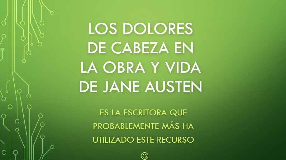 Jane Austen ha sido probablemente la escritora que más haya introducido el recurso del dolor de cabeza en sus novelas. Pero, ¿quería describir simplemente una reacción fisiológica, o quizás era una manera de reflejar la única forma de expresión (o protesta) que tenían las mujeres de aquella época?. He tomado como referencia dos artículos escritos por el Dr. Larner, que es quien se tomó la molestia de analizar esta condición en la obra y vida de Jane Austen.