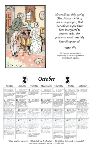 Calendario 2012 con eventos de la vida y novelas de Jane Austen (JASNA)