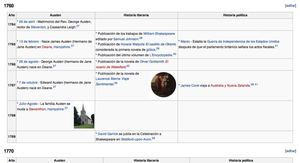 Cronologia de Jane Austen: Familia, Historia y Sociedad.
