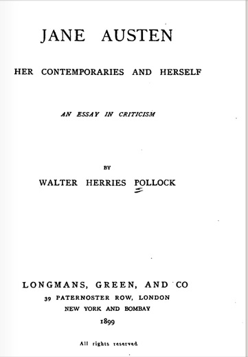 Biografías Antiguas de Jane Austen: «Jane Austen, sus contemporáneos y ella misma» de Walter H. Pollock, 1899
