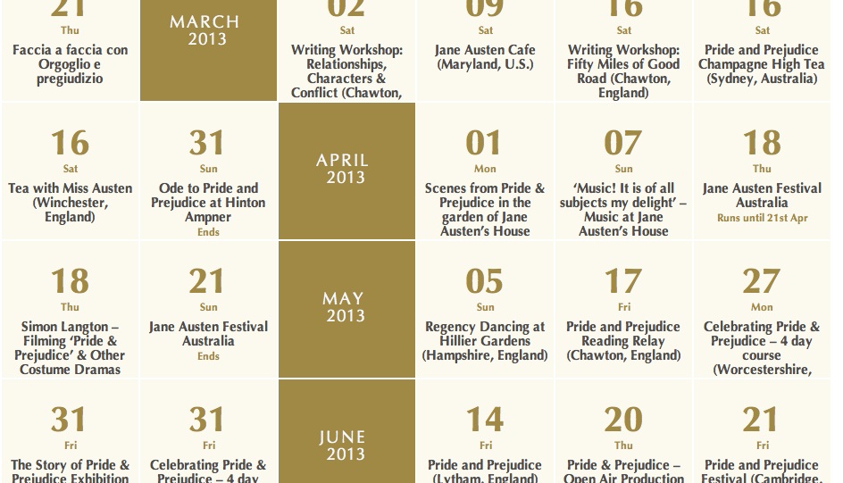 Calendario completo de las celebraciones del Bicentenario de Orgullo y Prejuicio durante 2013